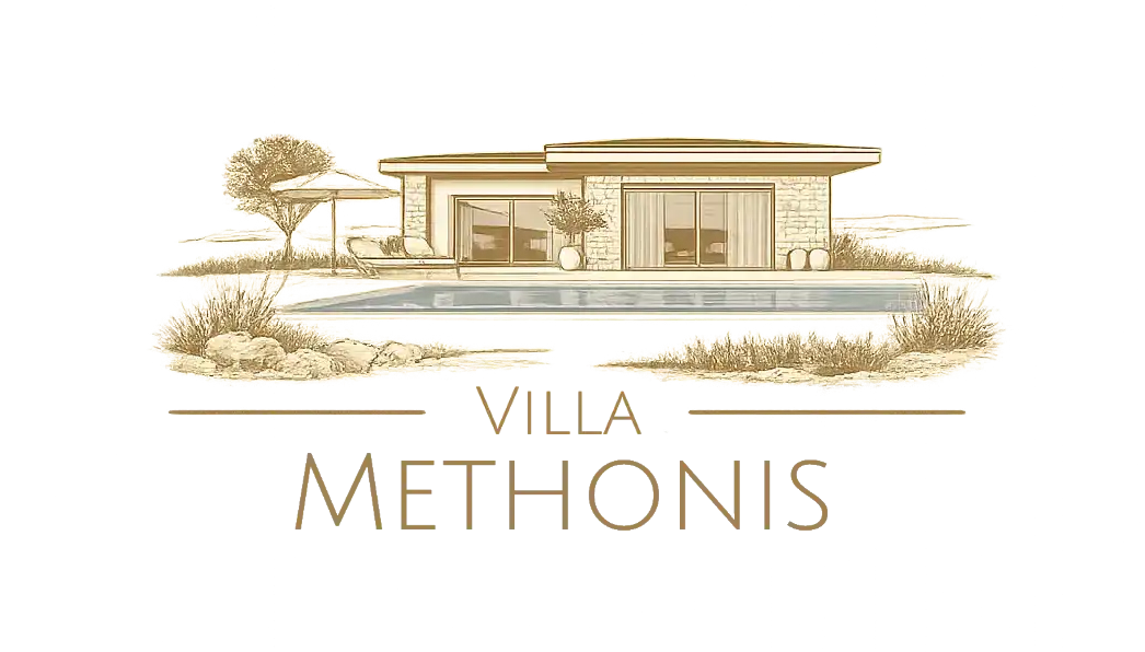 Die privilegierte Alleinlage garantiert absolute Privatsphäre. Gleichzeitig erreichen Sie das Meer und den Ortskern von Methoni in rund fünf Minuten mit dem Auto oder Fahrrad bzw. in etwa 20 Gehminuten. Strand, Tavernen und kulturelle Sehenswürdigkeiten bleiben angenehm nah, ohne die Ruhe des Anwesens zu beeinträchtigen. Die Zufahrt erfolgt komfortabel über eine asphaltierte Straße.
